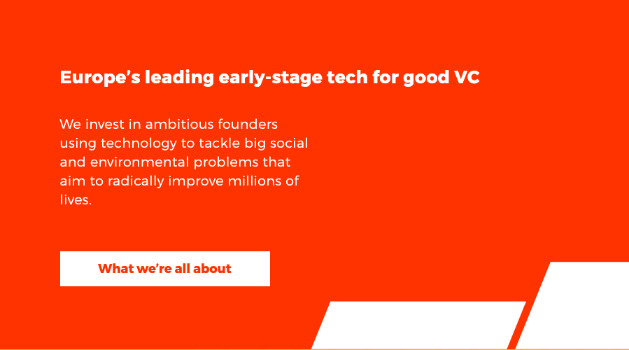 We are Europe’s leading early-stage tech for good VC. We back ambitious founders using technology to tackle big social and environmental problems that aim to radically improve millions of lives.