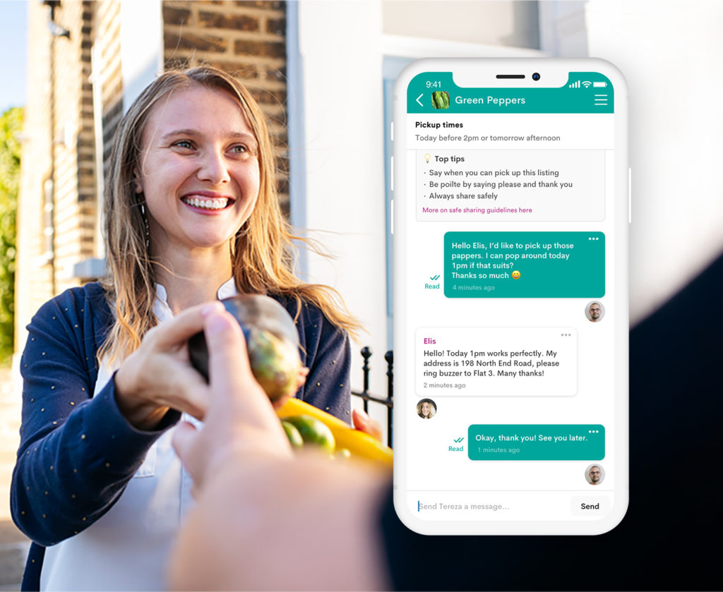 An app connecting neighbours to share surplus food, and other household items, for free.