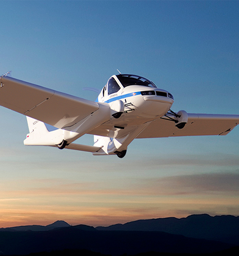 Leading innovation in aviation & transportation. Transition: flying car transforms from flight to drive mode. TF-2: eVTOL 3-part transportation system.